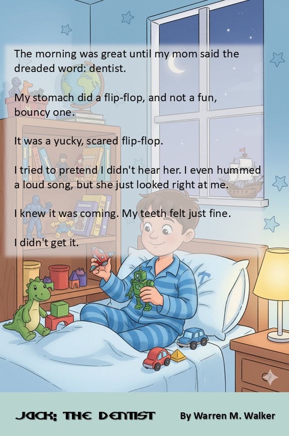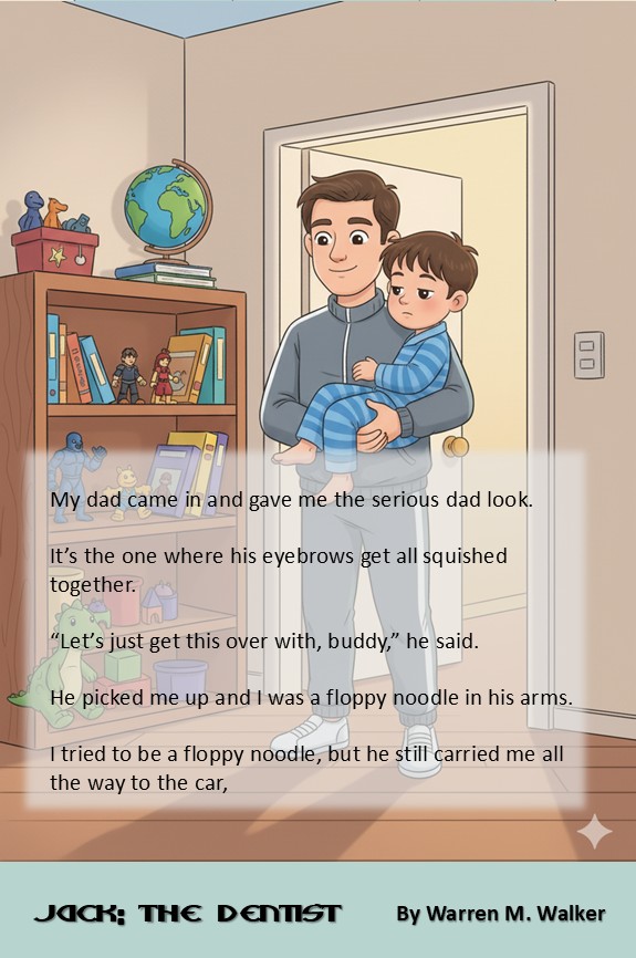 When Jack’s mom announces it’s time for his check-up, his stomach does a “yucky, scared flip-flop.” From hiding under the bed to becoming a “floppy noodle” in his dad’s arms, Jack tries every trick in the book to avoid going. The waiting room feels like a trap, and the happy cartoon tooth on the sign must be lying!