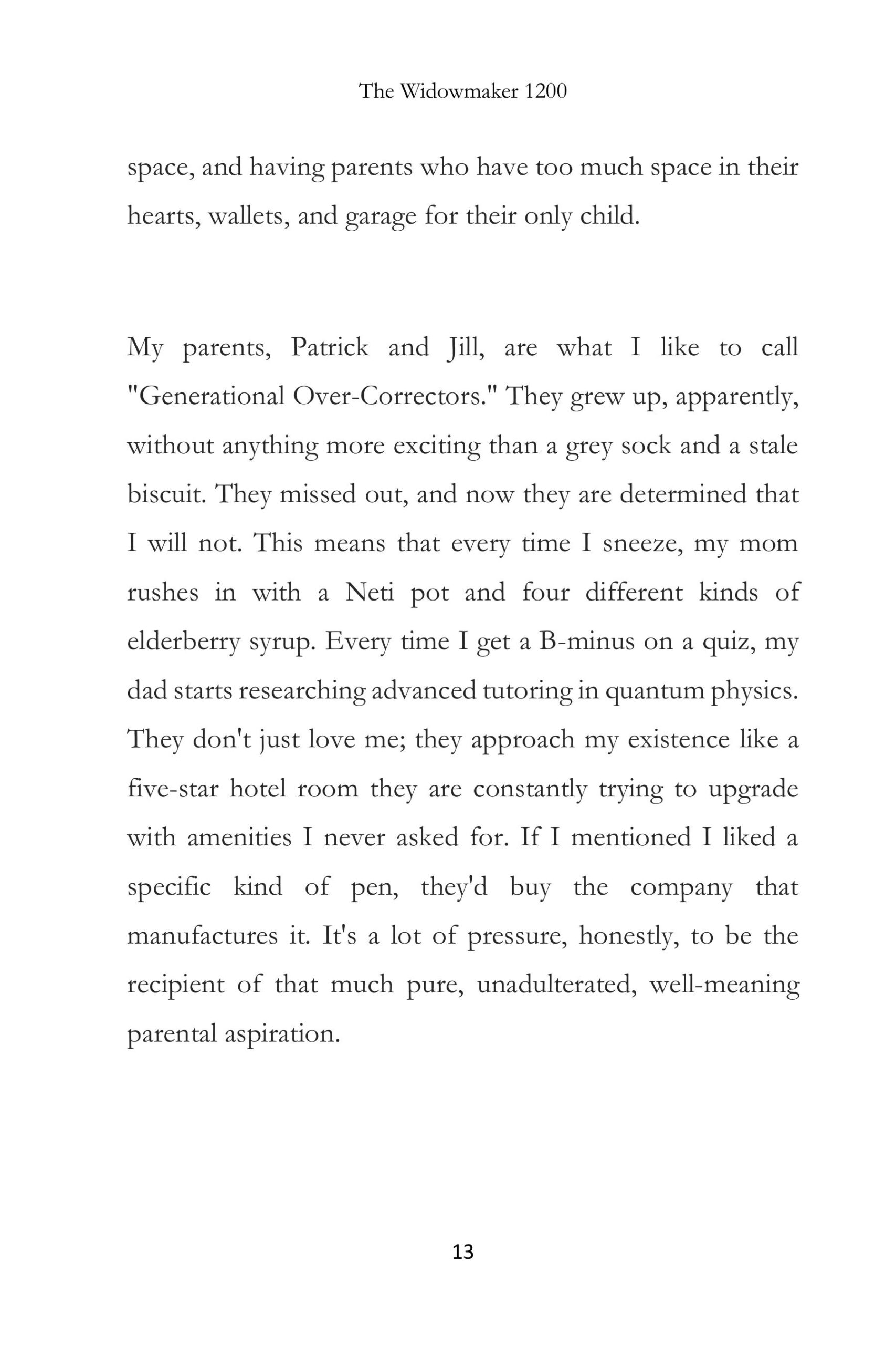 Armed with his permit and his magnificent machine, Bruce manages to attract the attention of Cassidy, the most effortlessly stylish girl in the neighbourhood. Their budding relationship, however, is constantly strained by Bruce’s overwhelming commitment to safety, driven by his hyper-vigilant parents who monitor his every move with GPS trackers and data-driven safety seminars. Cassidy pushes for the reckless excitement she associates with motorcycle life, while Bruce struggles to balance his love for the bike with his fear of Dad’s Fluid Dynamics of Wet Braking lecture.